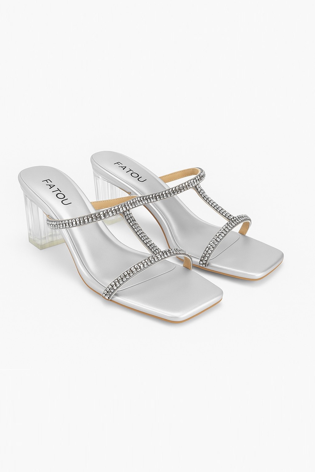 Step into elegance with these stunning Fatou Rhinestone Slip-On Sandals. Designed with a chic square toe and sparkling crystal-studded straps, these heels add a glamorous touch to any outfit. The transparent block heel offers modern sophistication while providing comfortable stability for all-day or evening wear. Perfect for weddings, parties, and festive occasions, these sandals effortlessly combine style, comfort, and shine.
